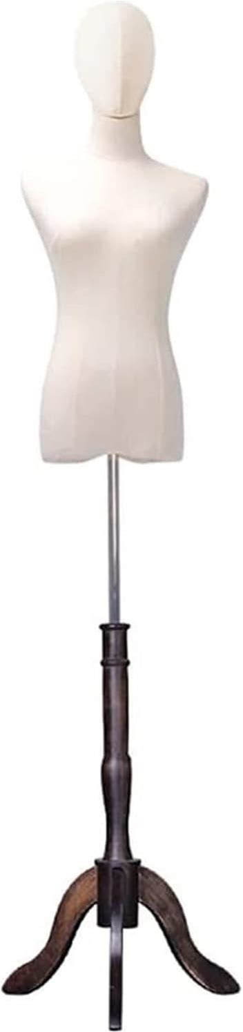 Female 3/4 Body Dress Form, Off White Fabric W/Wood Base