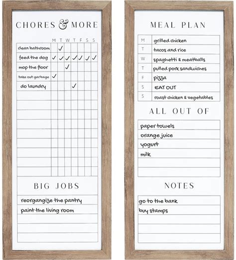 Sheffield Home Set Of Two Family Planner Dry Erase Boards Featuring, Shopping List, Weekly Meal Planner And Notes, 9X21 Inch - Tan
