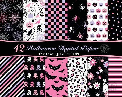 12 Pink Purple Seamless Halloween Pattern JPG Bundle | DIY Printable Scrapbook Digital Paper Design | Cute Spooky Repeatable Mix Match Print