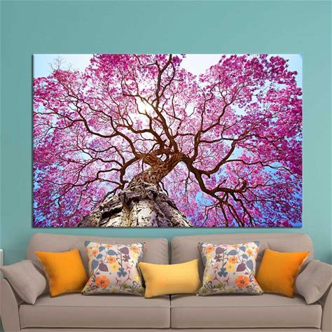 Purple Blossom Tree Canvas Art: Modern Nature Landscape Decor