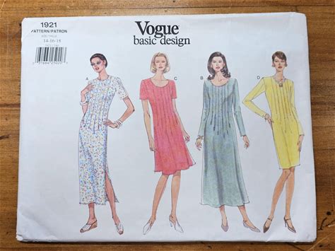 Vintage 1997 Vogue "Basic Design" Pattern 1921. Sweet Dress With Various Necklines, Lengths, Sleeves And Silhouettes. Available In 2 Sizes