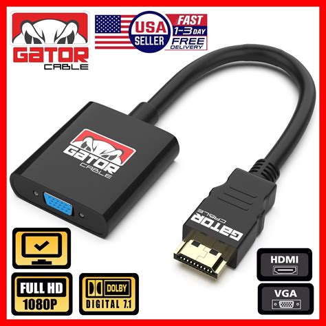 VGA To HDMI, GANA 1080P Full HD Mini VGA To HDMI Audio Video Converter Adapter Box With USB Cable And 3.5mm Audio Port Cable Support HDTV For PC Laptop Display Computer Mac Projector (Black)