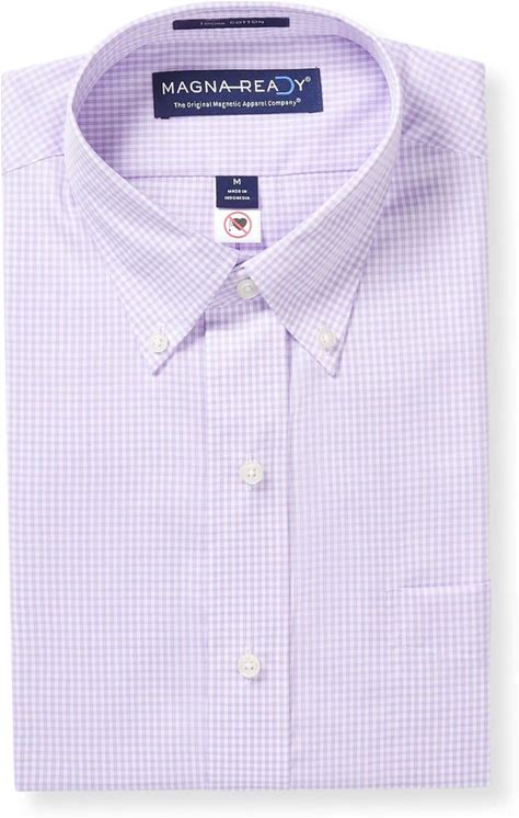 Men's Magnetic Long Sleeve Lilac And White Micro Plaid Button Down Shirt With Magnetic Buttons - Size X-Small - Magnaready - Parkinson's Adaptive Clothing - Best Gifts For Retirees