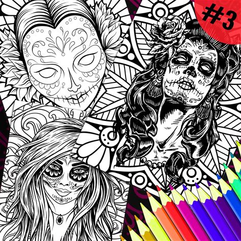 Day Of The Dead Adult Coloring Pages 3 Pack 1 Calavera Mexican Sugar Skull Queen Catrina Woman Printable Print At Home