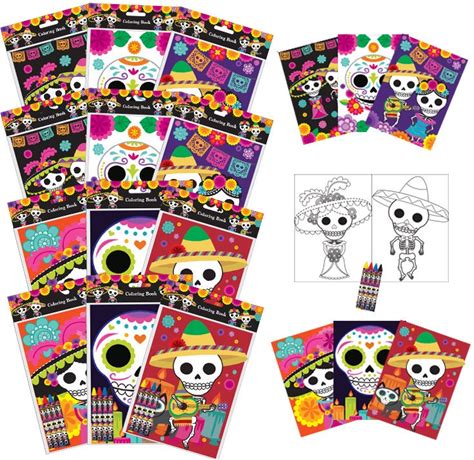 Day Of The Dead Dia De Los Muertos Coloring Books With Crayons Party Favors