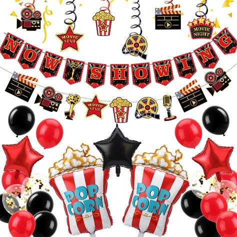 Movie Night Decorations - 26 Pcs Movie Night Supplies, Movie Theme Party Decorations, Movie Theater Decor Include Camera Popcorn Balloons Movie Night