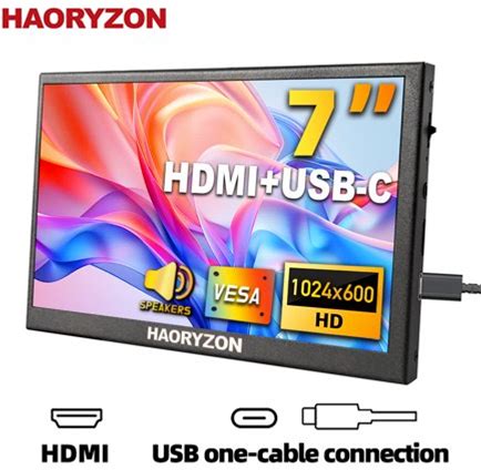 Compact 7-Inch Monitor Usb-C Small LCD Monitor IPS 1024X600 Laptop Secondary Screen Portable Computer Mini Display For Raspberry Pi PC Windows 10 11