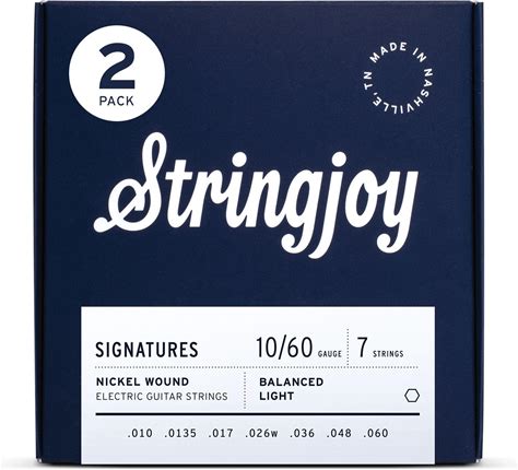 Stringjoy 7-String Balanced Light Signatures Nickel Wound Electric Guitar Strings 10-60, BAL107, Balanced Tension & Incredible Tone, Electric Guitar 7