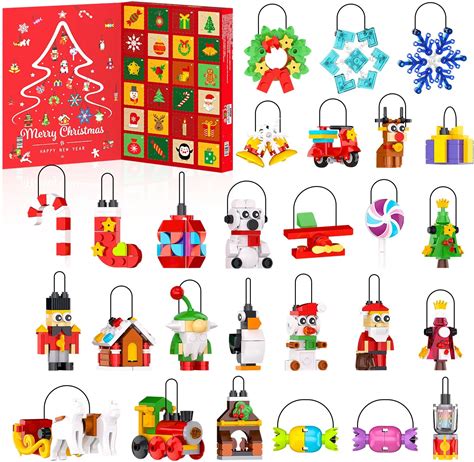 Christmas Ornaments Building Blocks Set - Advent Calendar Toys For Kids, Stocking Stuffers, Party