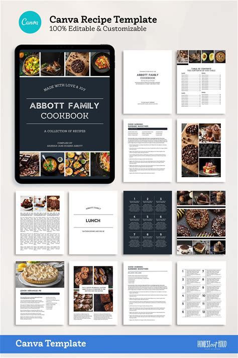 Cookbook And Recipe Template For Canva | Instant Printable Download | Mac/PC And iPad | Simple Bold Clean Minimalist Classic Design | Abbott