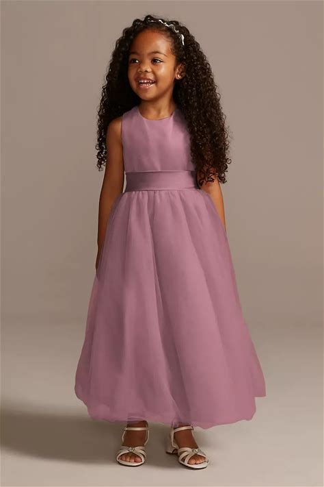 David's Bridal Girls Quartz Satin Flower Dress With Tulle Skirt In Size: 6