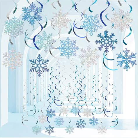 Pullimore 30 Pcs Christmas Hanging Snowflake Decorations Winter White Glitter Snowflake Ornaments For Window Xmas Tree Ceiling (4.3 Inch)