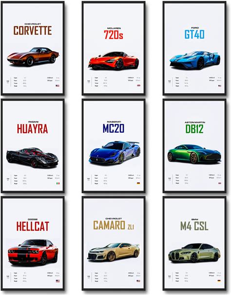 Dazongweihan 9Pcs Super Car Posters For Boys Room, Racing Car Wall Art For Men Guys, Sports Car Wall Decor, Race Cars Pictures Wall Decor For Bedroom