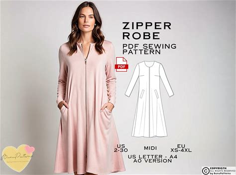 Zipper Robe Sewing Pattern, Pocket Robe PDF Sewing Pattern Instant Download, US Sizes 2-30, Plus Size Pattern, Winter Women Sewing Pattern