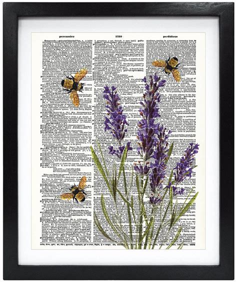 Susie Arts 8X10 Unframed Bees With Lavender Flowers Upcycled Vintage Dictionary Art Print Book Art Print Home Decor Funny Prints V103